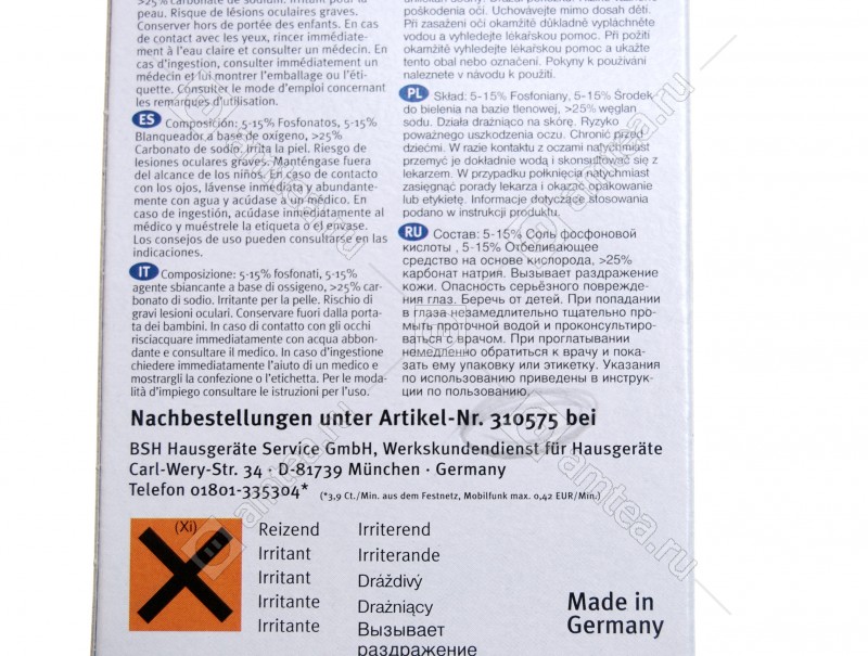 Чистящие таблетки для кофемашин, термосов. Удаляют отложения кофейного жира.С помощью данного средства можно удалить засоры и загрязнения из-за кофейного жира. Загрязнения образуются на фильтрах блока заваривания кофе, а также на держателях фильтров. Также можно очищать термосы и кофейные колбы. Рекомендуется применять каждые 14 дней или после заваривания 250 чашек. Способ применения. Разломите таблетку на несколько частей, но не крошите, и заложите в отсек для молотого кофе, поставьте чашку под устройство выдачи кофе. Нажмите кнопку для выбора варки из молотого кофе и запустите процесс варки. После того как будет получено полчашки воды, выключите прибор примерно на 5 мин для воздействия раствора.