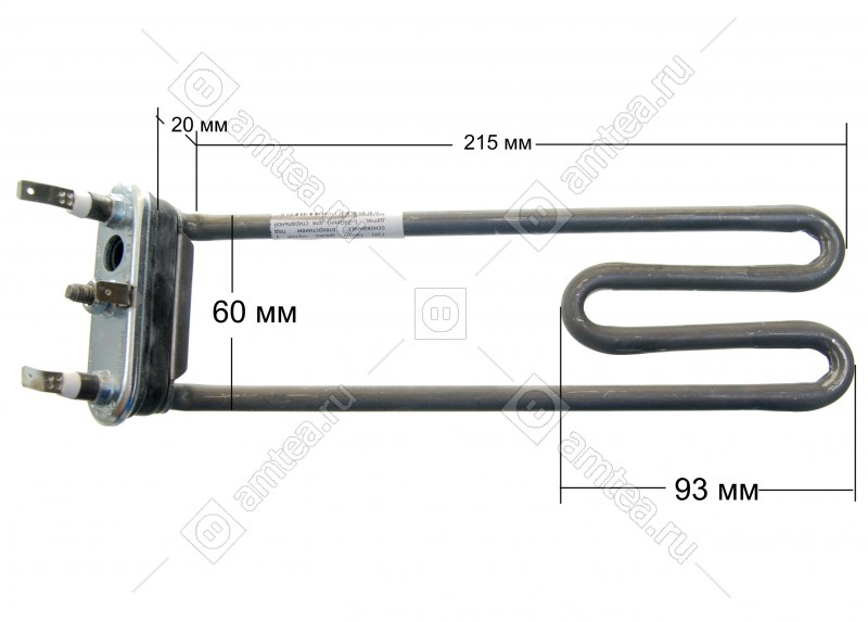 ТЭН (нагреватель) L=240 мм, 1900W, резко гнутый у основания стиральной машины Bosch, Siemens